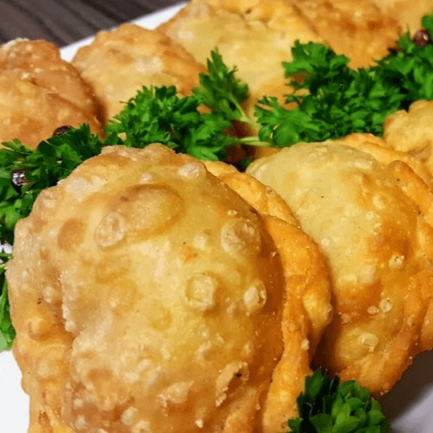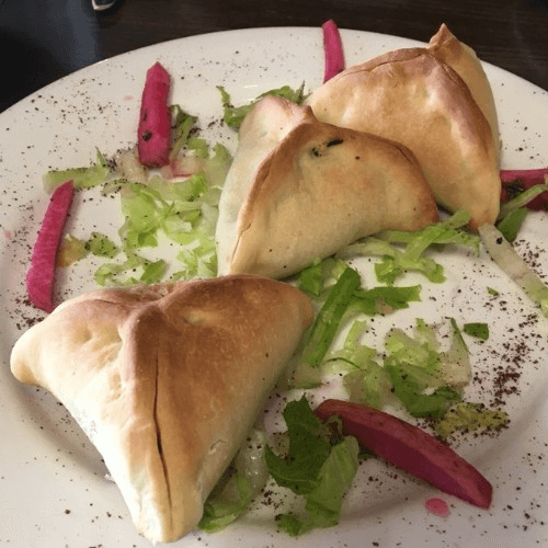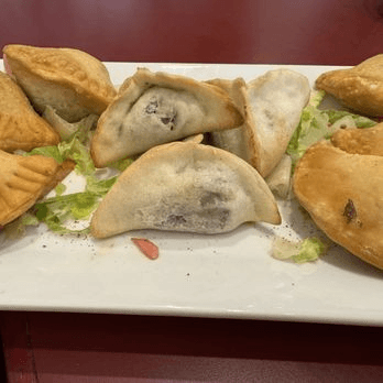 Deep fried four pastry shells filled with Angus ground beef, diced onions and pine nuts with our special spices.
