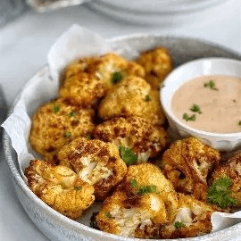 Golden fried cauliflower with cilantro, garlic, lemon juice
