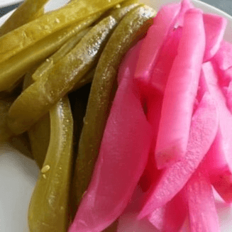Sautéed lamb sausages mixed with Lebanese spices, grilled tomatoes, turnips and pickles.