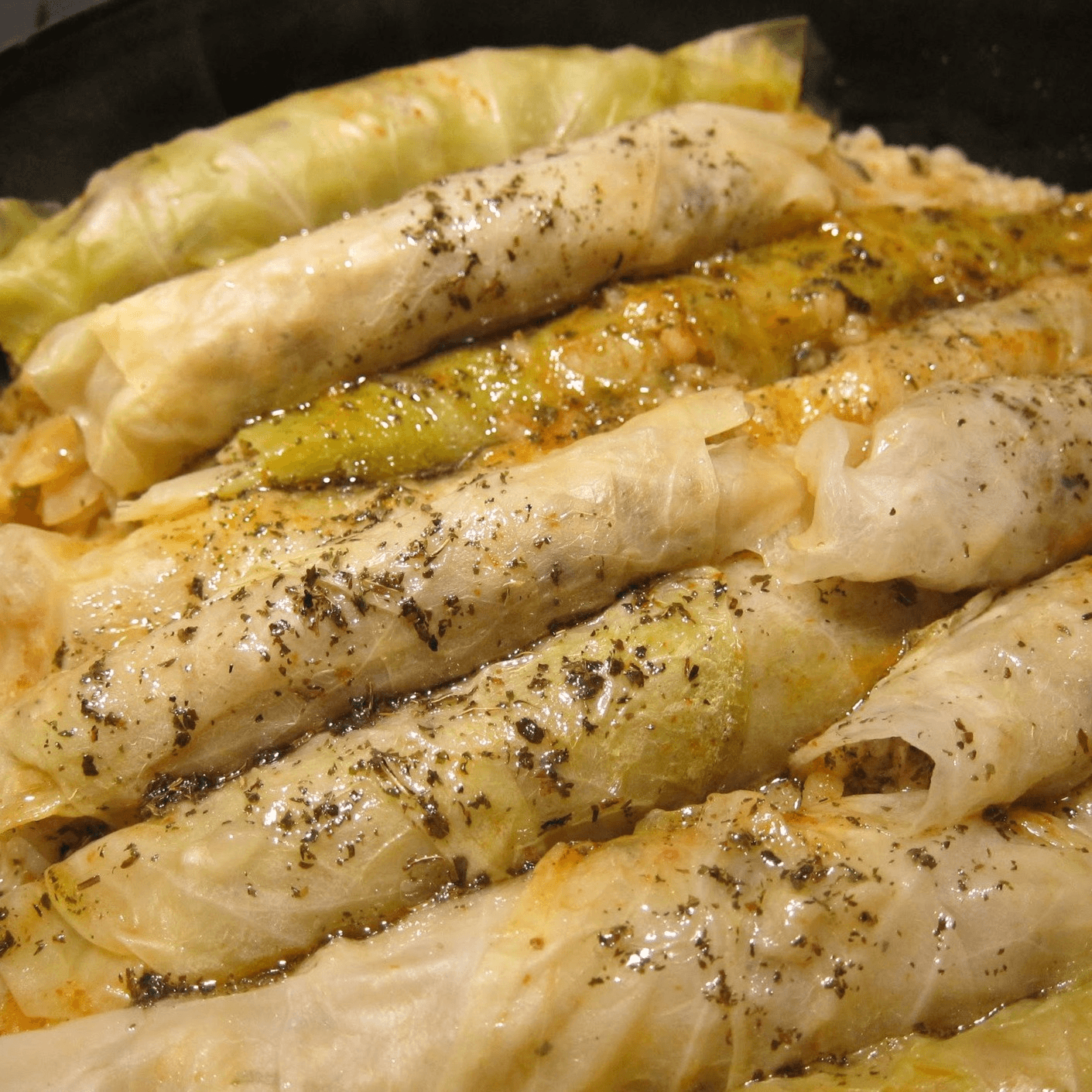Cabbages leaves stuffed with angus ground beef and rice, poached in lemon juice, garlic And dried mint, served with yogurt.