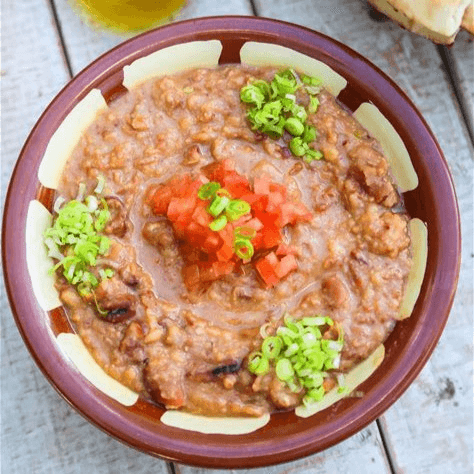 A mix of cooked fava beans and chickpeas in a lemony sauce with garlic, diced tomatoes and imported extra virgin olive oil.