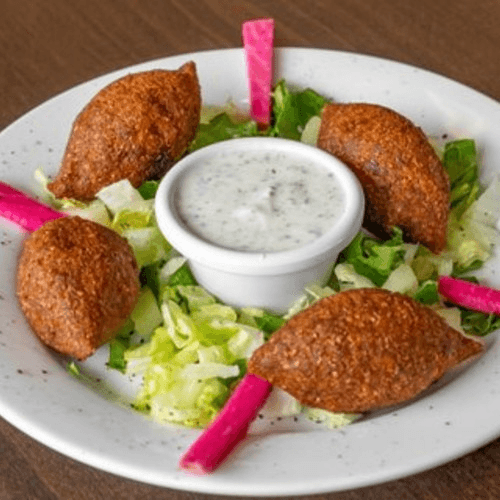 Deep fried Angus ground beef and cracked wheat shells, stuffed with a mix of Angus ground beef, diced onions and pine nuts.
